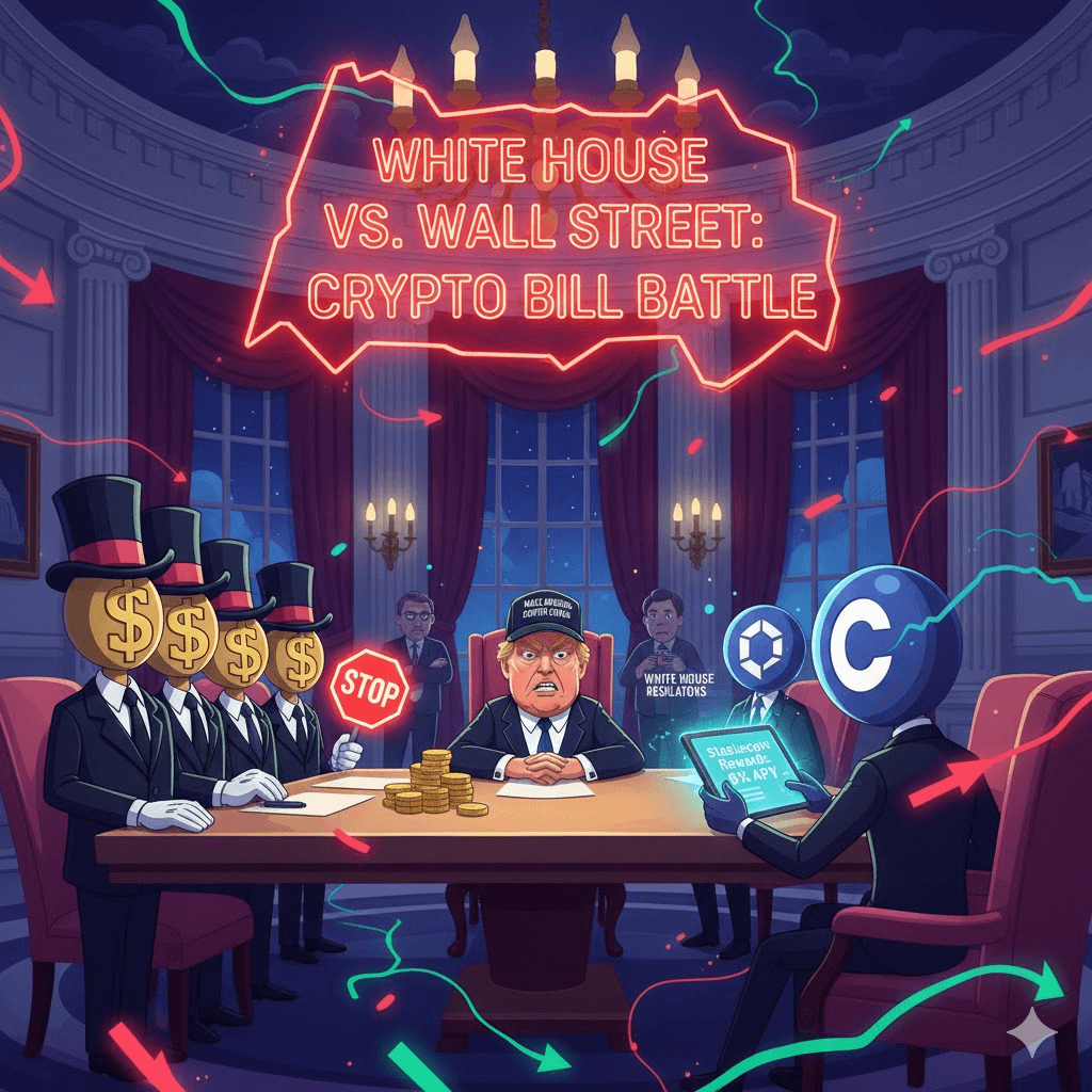 The White House met with crypto executives and banking trade groups Monday to resolve a legislative deadlock over U.S. crypto market rules. The effort comes after Coinbase withdrew support from a Senate bill banning most stablecoin rewards, halting a planned vote.