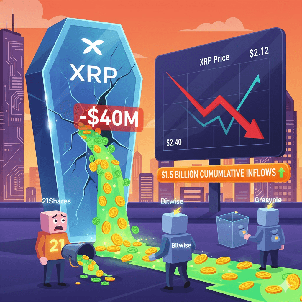 At the time of reporting, XRP is trading near $2.12. Analysts describe this as a “healthy reset” after an overextended move. Despite the $40 million exit, cumulative inflows since November still stand at a robust $1.5 billion, indicating that the long-term institutional thesis for XRP remains intact.